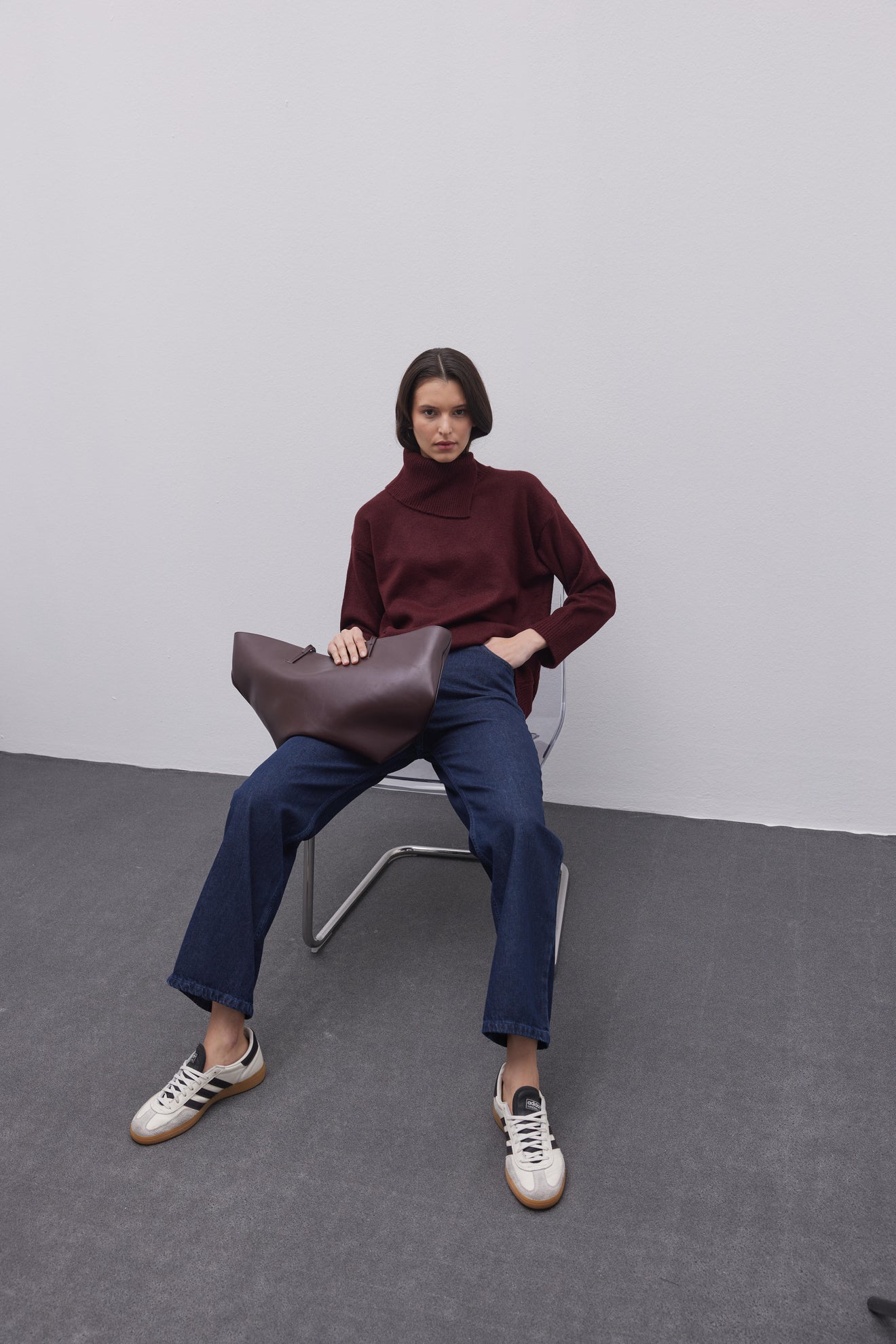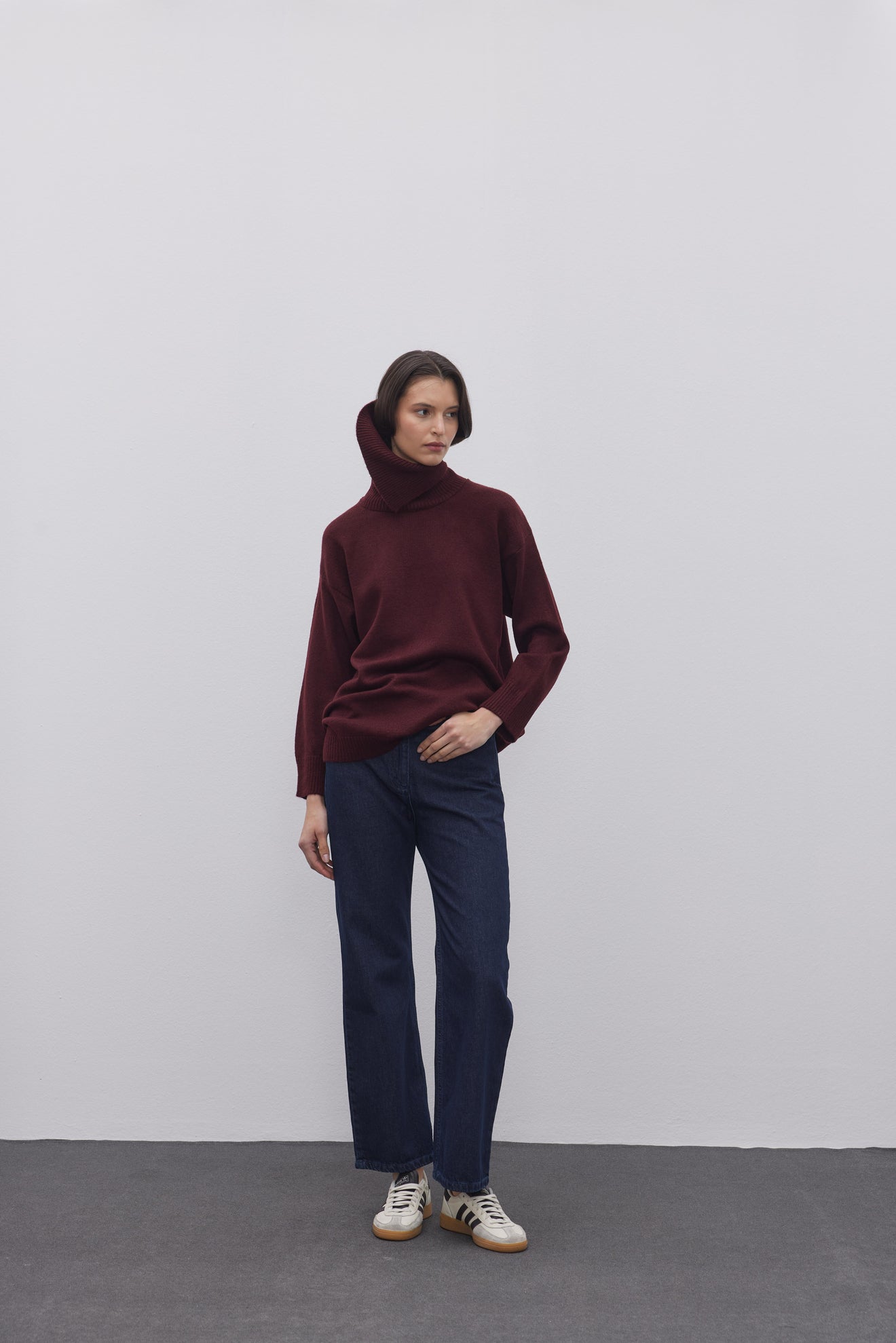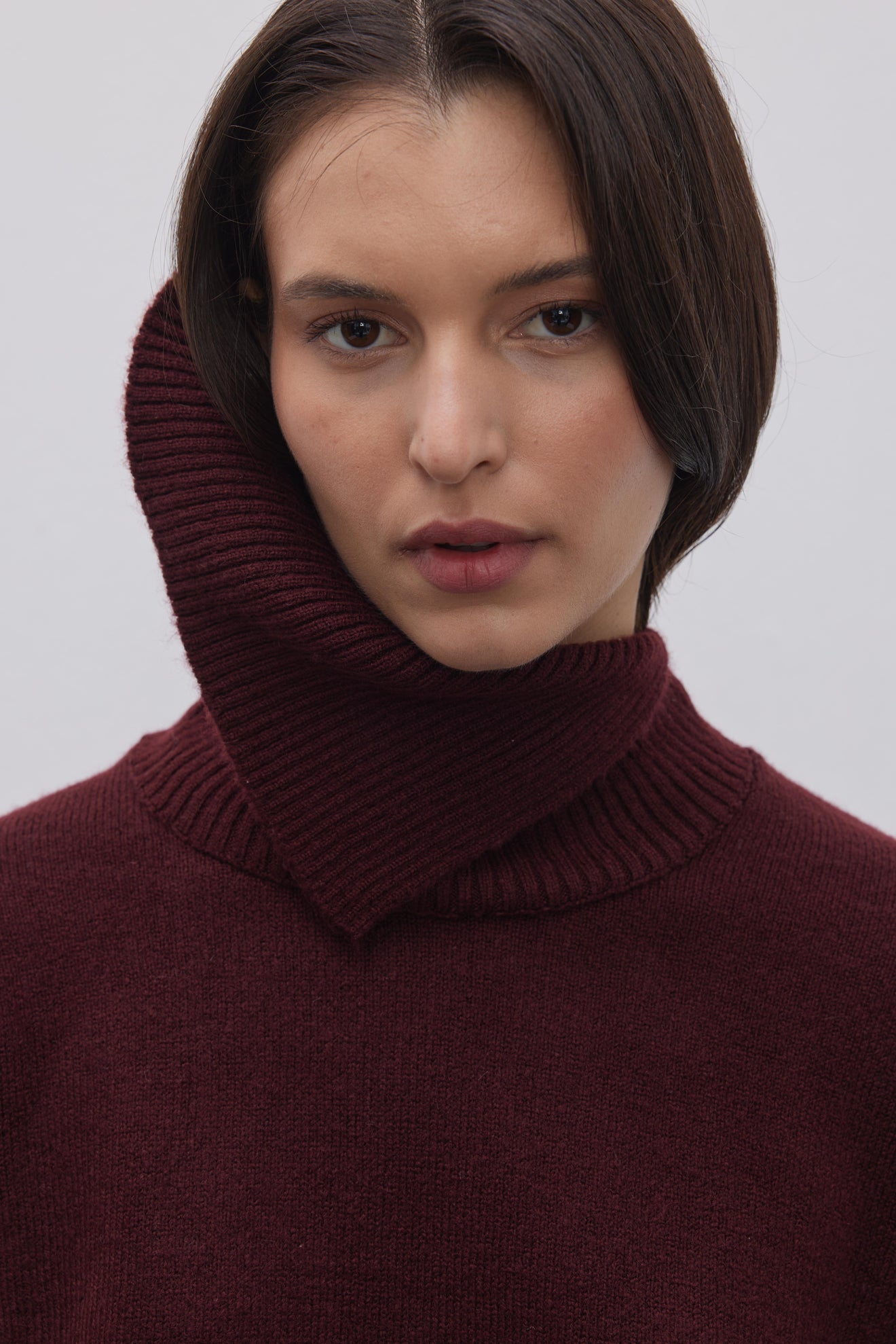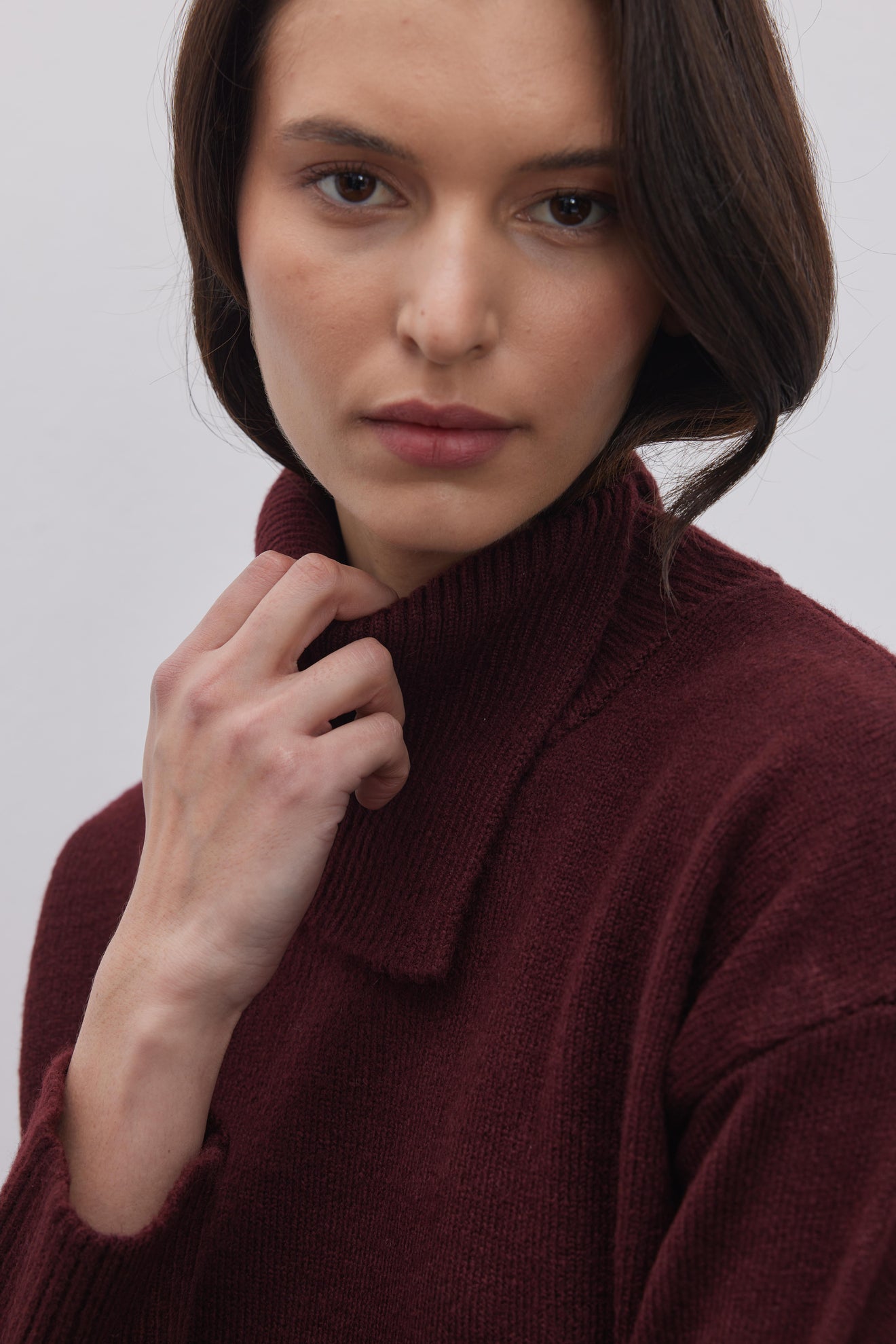 Yırtmaç Yakalı Triko Kazak Bordo